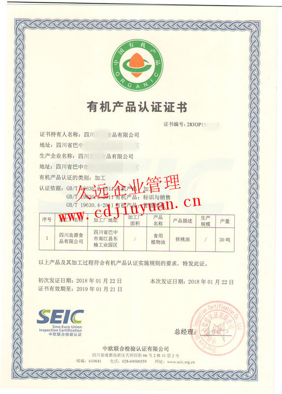 有機(jī)食品認(rèn)證證書
